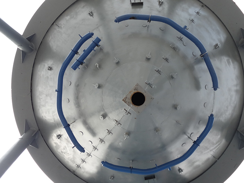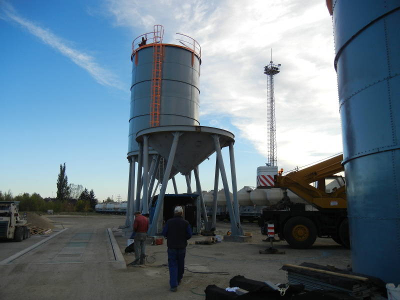 Stalowy zasobnik emaliowany z lejem stożkowym przeznaczony jest do materiałów sypkich o maksymalnym ciężarze nasypowym 1.600 kg/m3. Składa się z: płaszcza, pierścienia nośnego z podporami, dachu, leja stożkowego 40°, drabiny wejściowej z platformami oraz rurociągu służącego do napełniania.